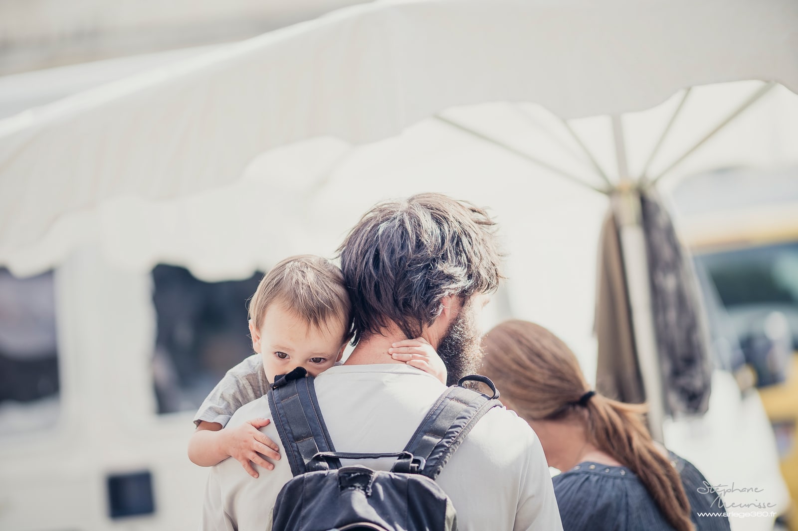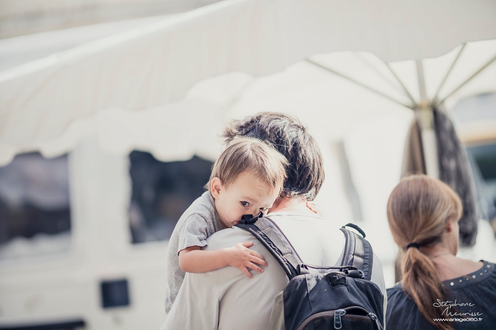 Dans la séquence suivante j’ai sélectionné 3 photos (sur 8) d’une scène au marché de Saint Girons. Aucune analyse similaire avec les images de Bateson mais dans ce décomposé de la vie quotidienne on ne sait pas vraiment ou doit se porter notre regard : la main de l’enfant accrochée au cou ? le regard ? la position sur le corps de son père ?