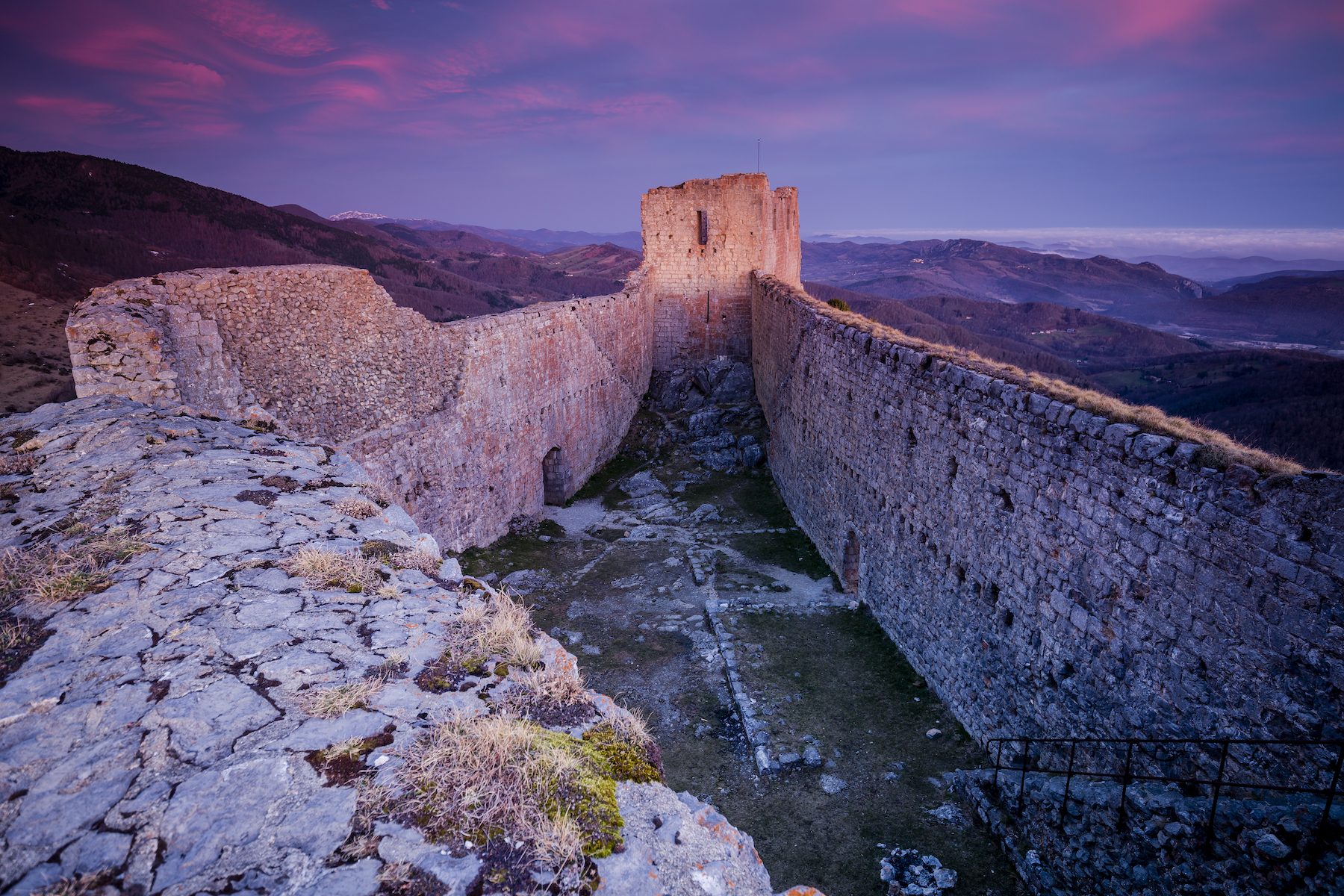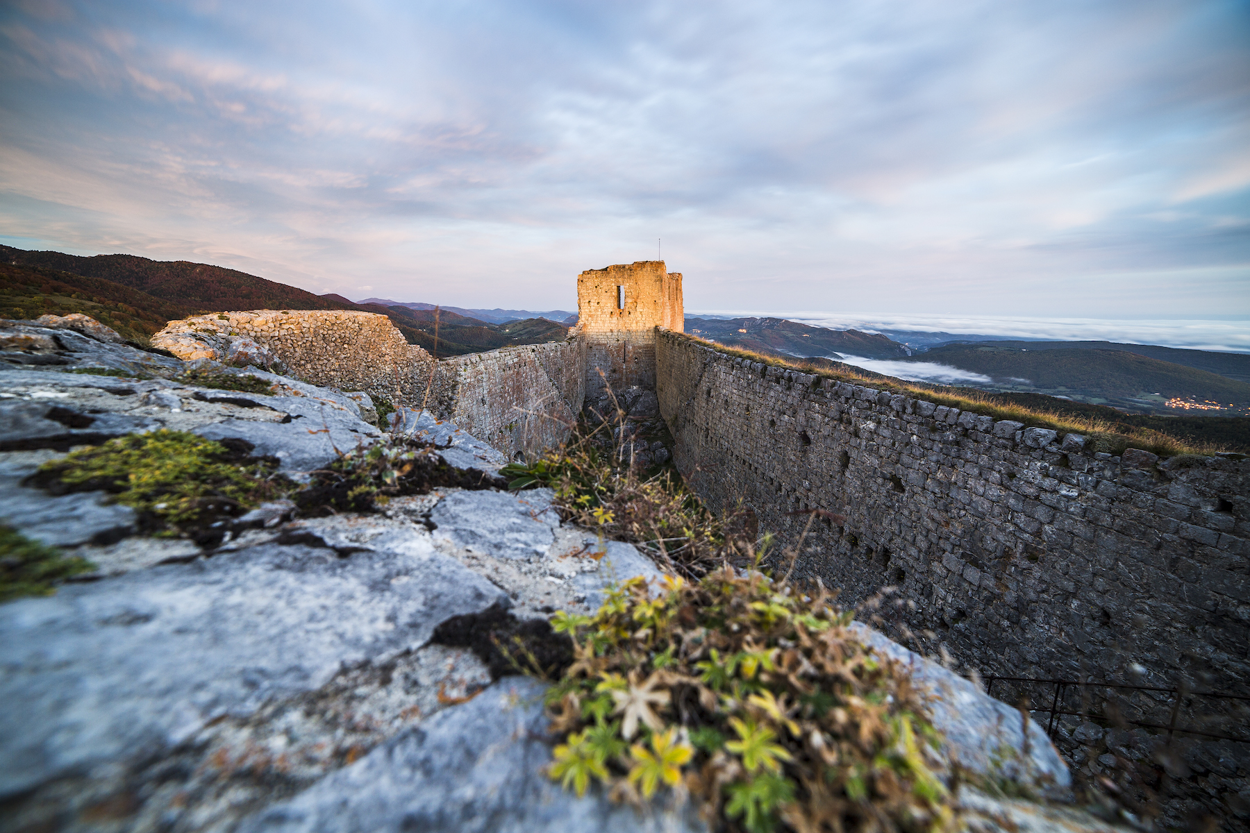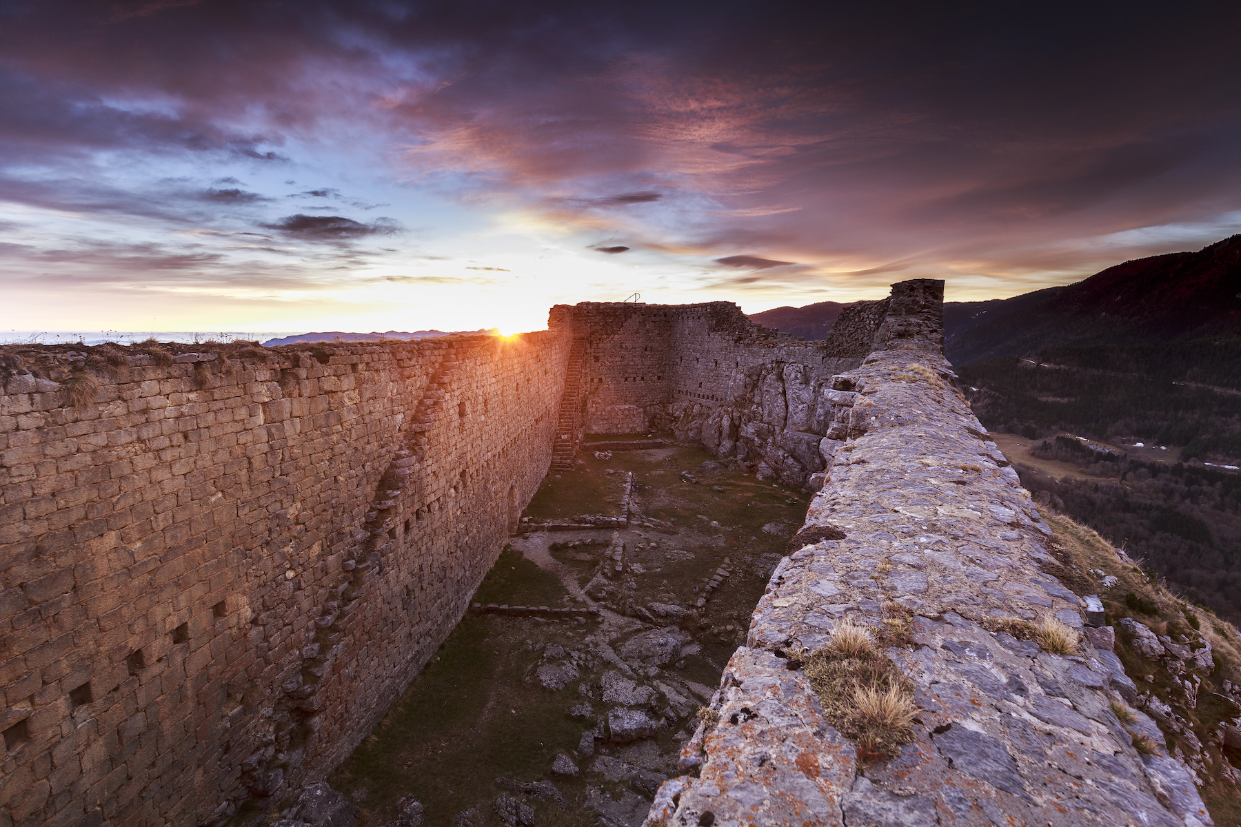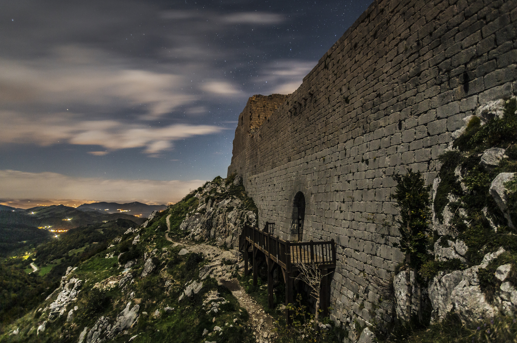 Ma première rencontre avec Montségur fut un moment d’émerveillement pur. L’épaisseur des murs offre une acoustique surprenante quand on pénètre au centre du château. La nuit ce sentiment étrange est accentué. C’est un château relativement bien conservé, contrairement au château de Roquefixade qui est plus dégradé (mais avec son charme). Le panorama au niveau des remparts (attention l’accès est interdit par un arrêté municipal) est à couper le souffle.