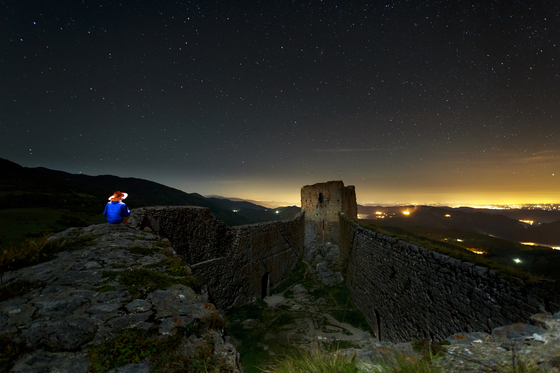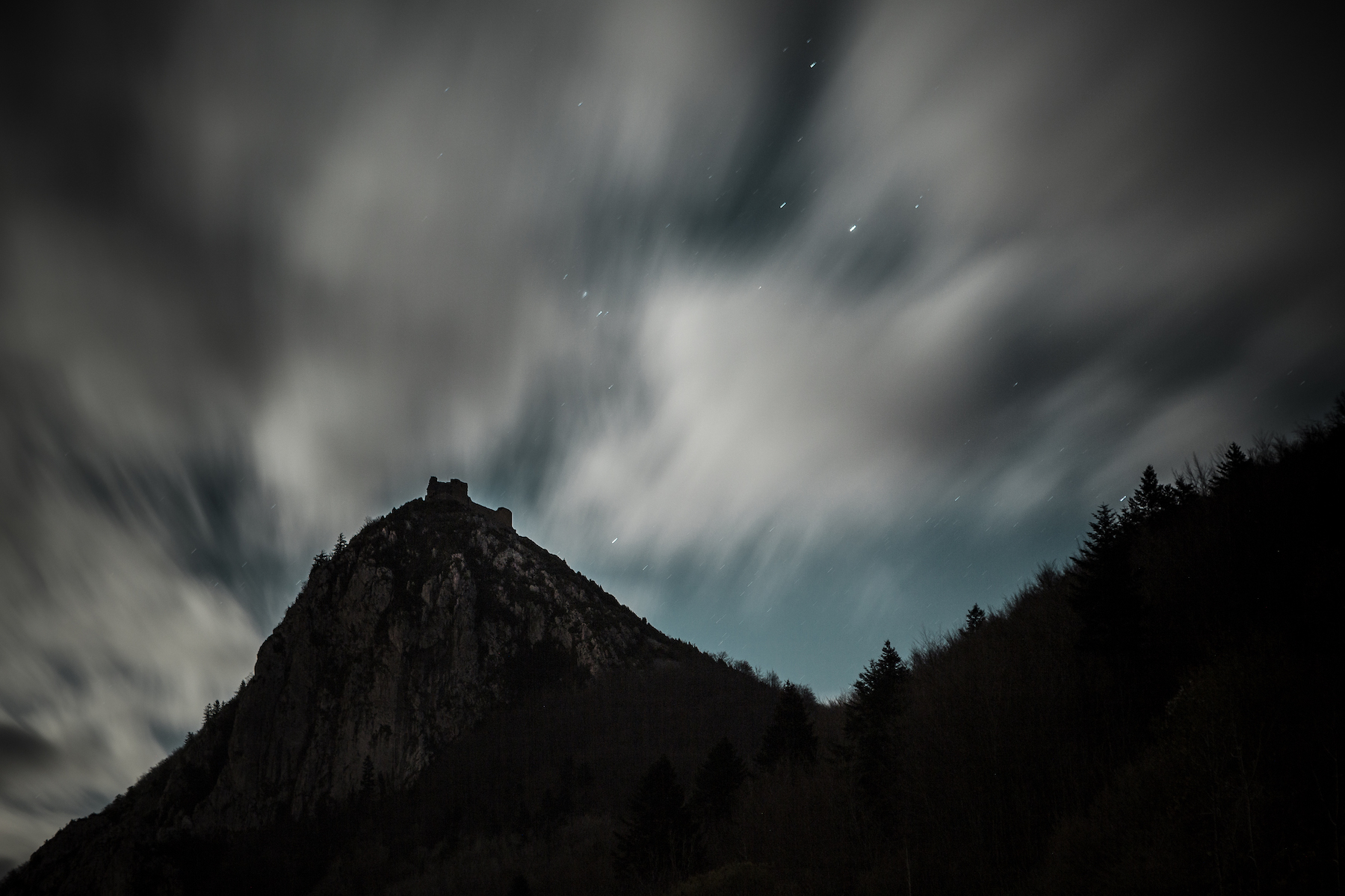 Montségur est pour moi un véritable décor de cinéma. J’ai utilisé ce château comme toile de fond pour nombre de projet photographique. J’aime particulièrement l’ambiance nocturne en attendant le lever du jour. Les brumes matinales, les étoiles et les levers de soleil colorés ont donné à mes clichés une dimension magique.