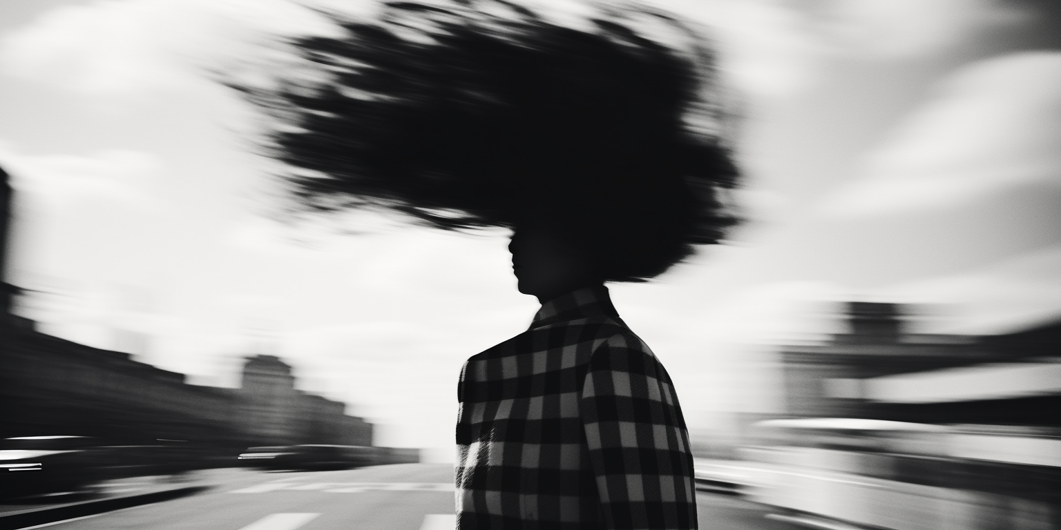 Le flou de mouvement peut aussi représenter le passage du temps, capturant l’essence éphémère d’un moment.Les cheveux dans un mouvement éphémère rappellent que chaque moment est transitoire, et que la beauté réside souvent dans ce qui est fugace et non capturable. Le flou de mouvement peut servir de métaphore visuelle pour des concepts tels le passage à une nouvelle étape de la vie.