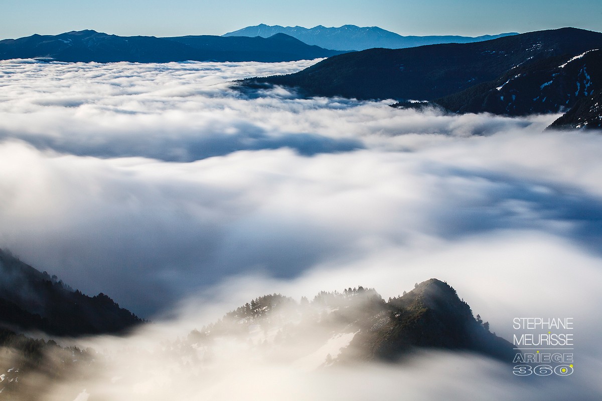 Départ pour le Tarbesou… bizarre… le nuage au niveau du parking… (2000 m)… montée… blabla… blabla… arrivée au sommet… bizarre ce nuage 50 mètres en contre bas du Tarbesou (2300 m)… Zut alors ! la mer de nuages est bien plus haute que prévue ! bon ben le soleil va faire son effet… je patiente dans cette ambiance humide jusqu’à ne plus sentir mes doigts !